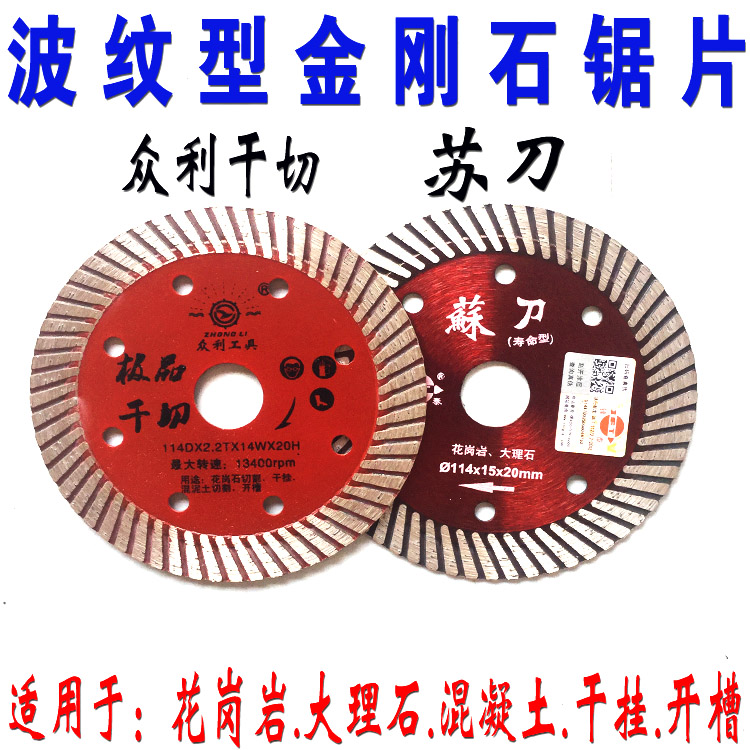 Jiangsu Zhongli best dry cutting Su knife 114 diamond saw blade marble granite saw blade stone piece