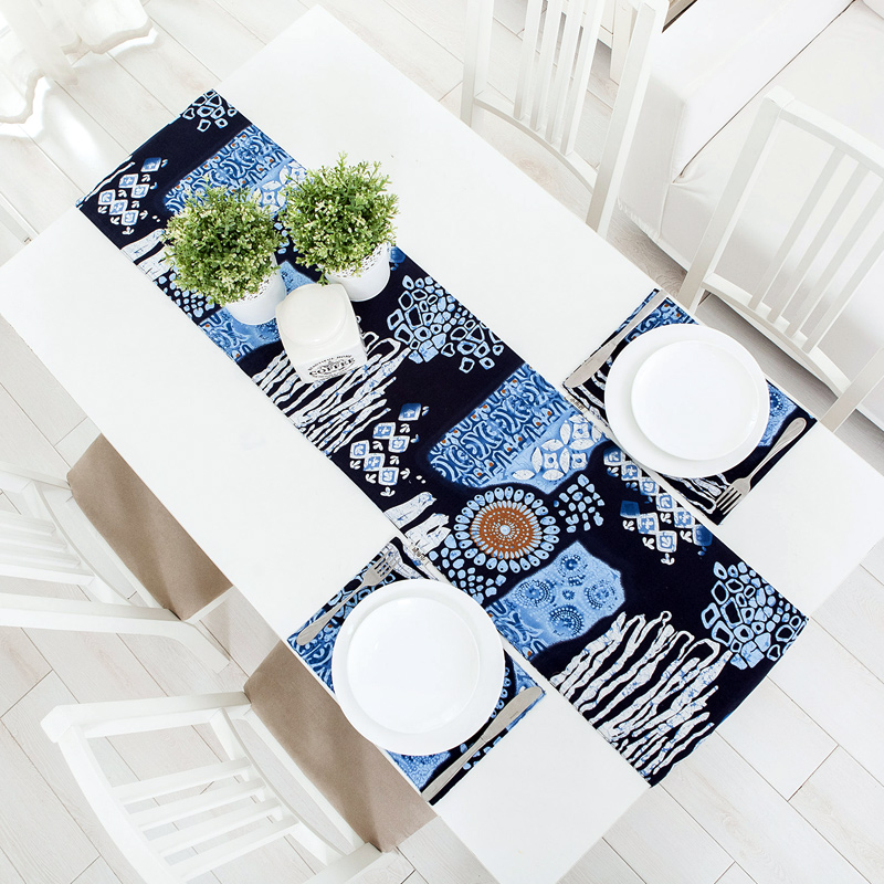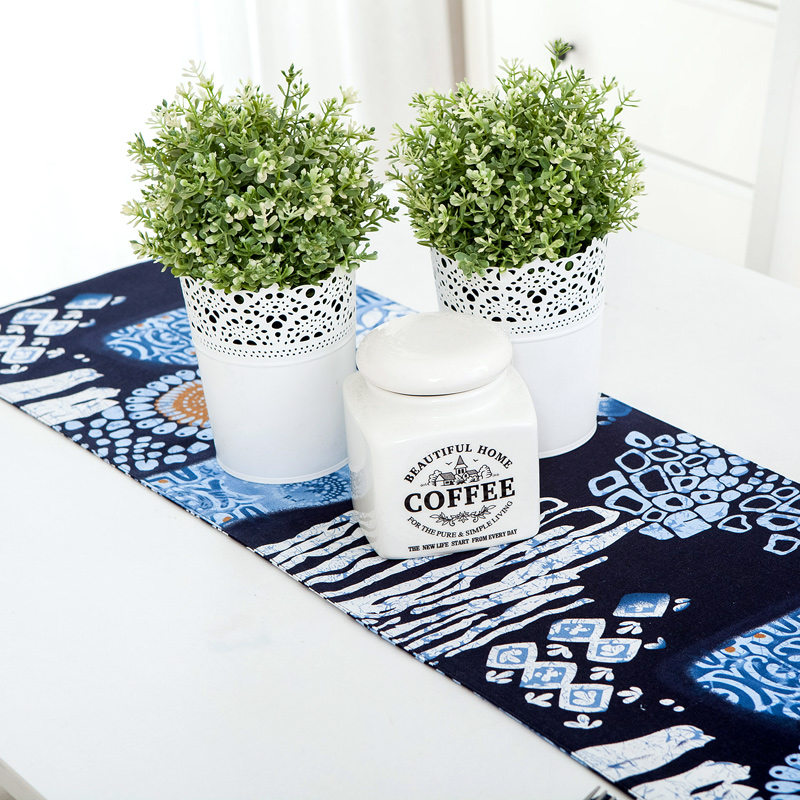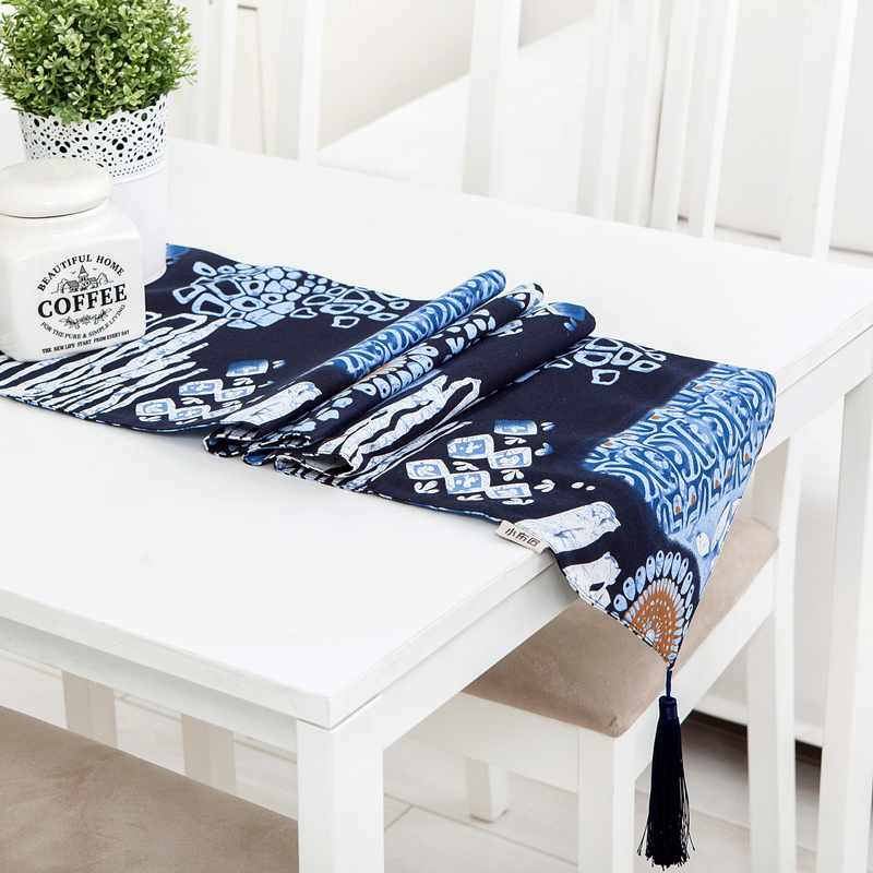 Retro National Wind Green Flower Table Flag Dining Mat Chinese Cotton Linen Cloth Art Double Classy TV Cabinet Table Cloth Bed Flag