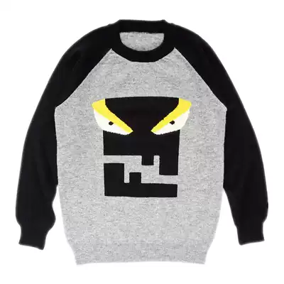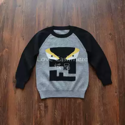 Fleece custom winter slanted shoulder little devil children cartoon sweater parent-child round collar sign Korean cashmere sweater