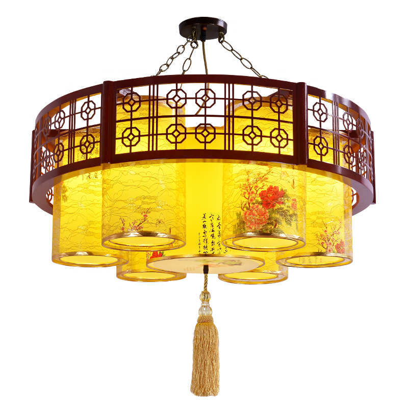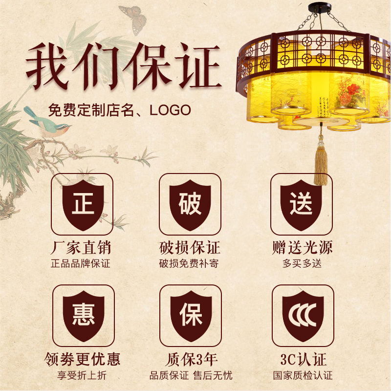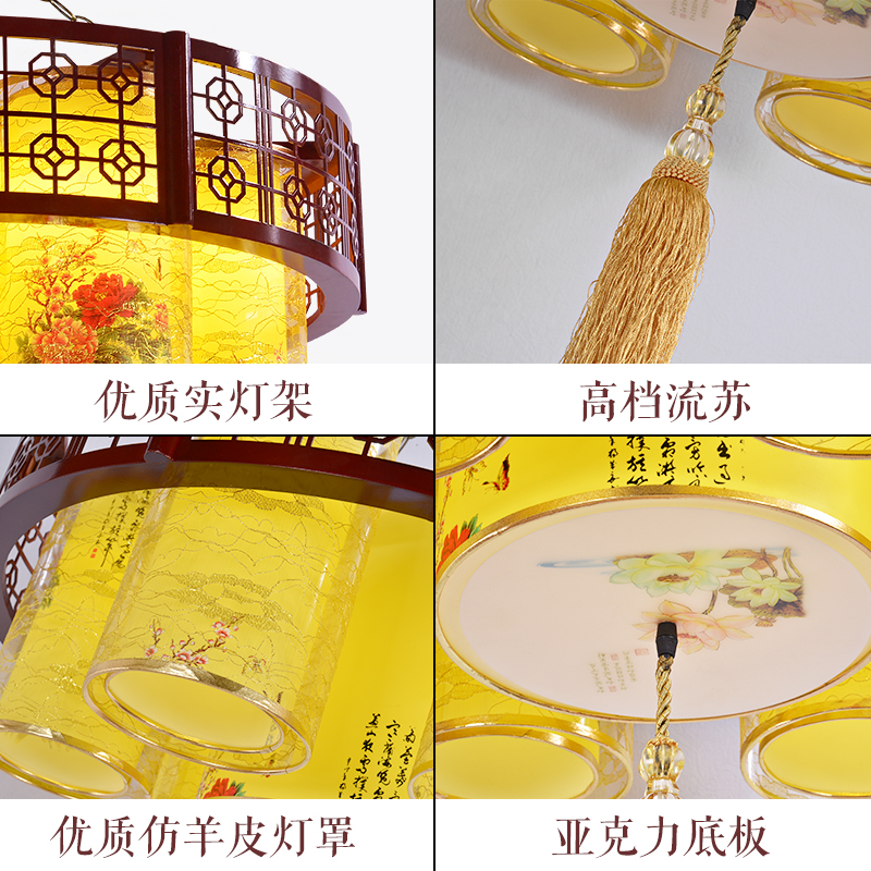 High-end Chinese Classical Chandelia Solid Wood Hotel Light Vintage Goat Leather Round Dining Hall Tea Building Hotel Hall Engineering Light