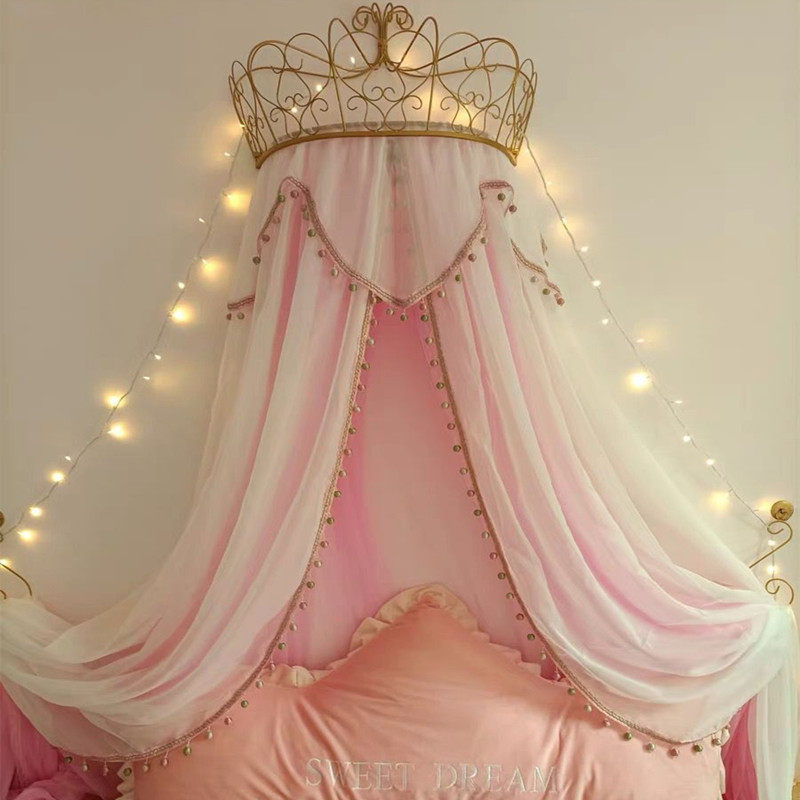 European style wrought iron bed mantle frame crown curtain frame princess bedside decorative bracket mosquito net rack single and double track fabric display