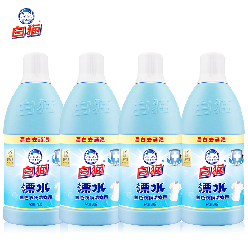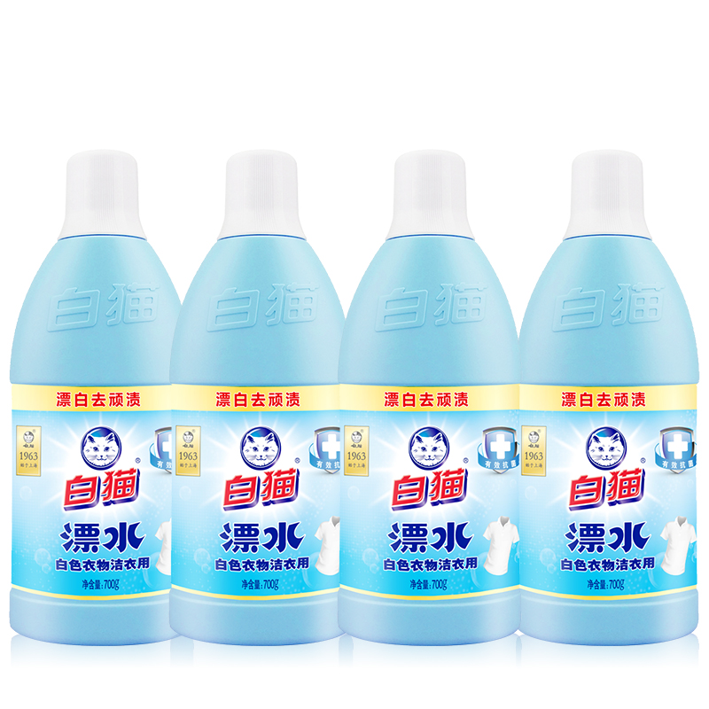 White cat washing water 700g * 4 bottles of white clothing household bleaching water bleaching water removal stubborn stains disinfection