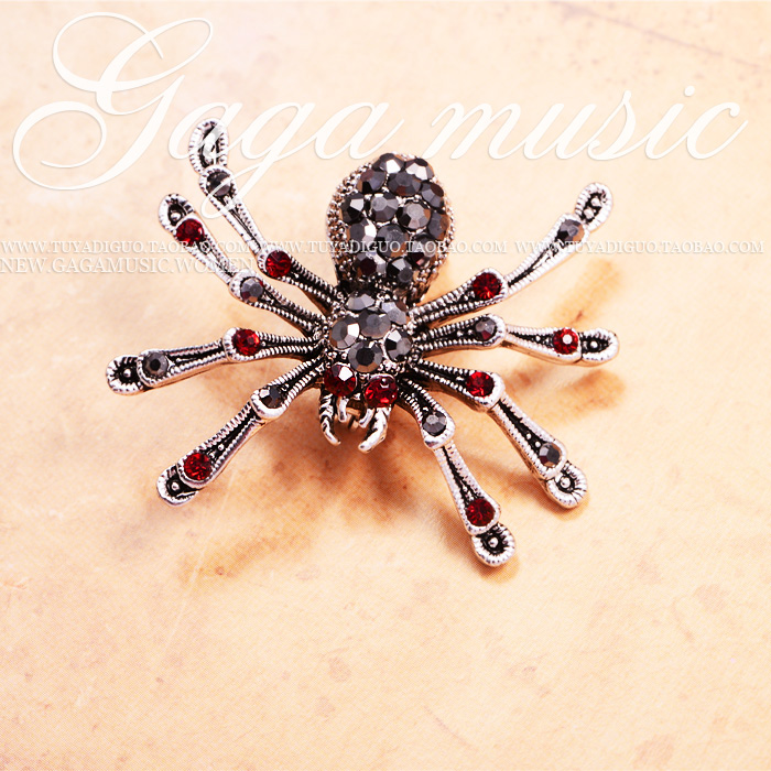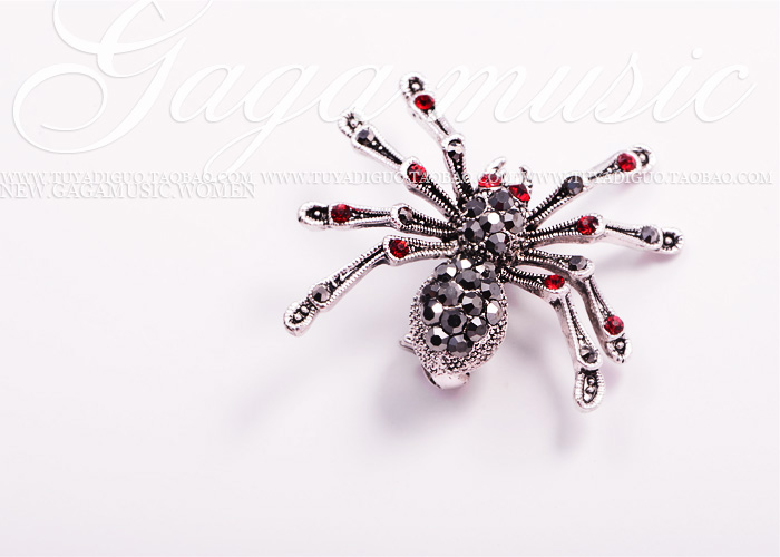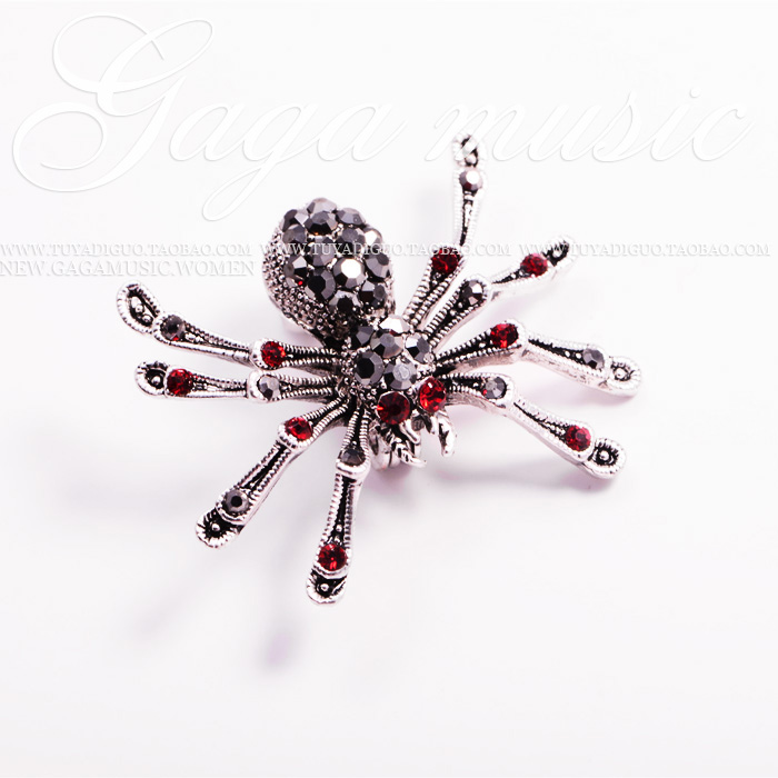 Black retro red eyes spider crystal brooch with plethora of chest flowers and creative holiday gifts