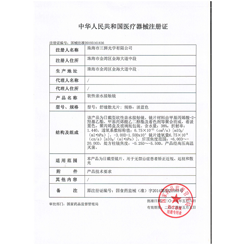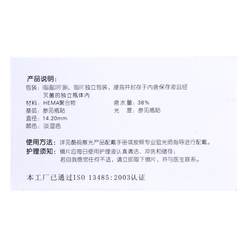 Contact lens and care solution product name: