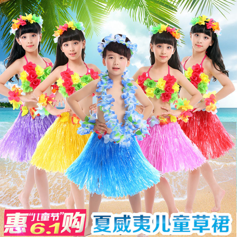 Children's Seagrass Dance Clothing Hawaii Herb Dress Kindergarten for Men and Women Kindergarten Performance Environmental Prop Dress