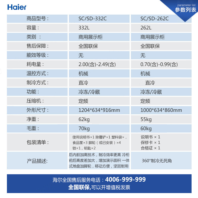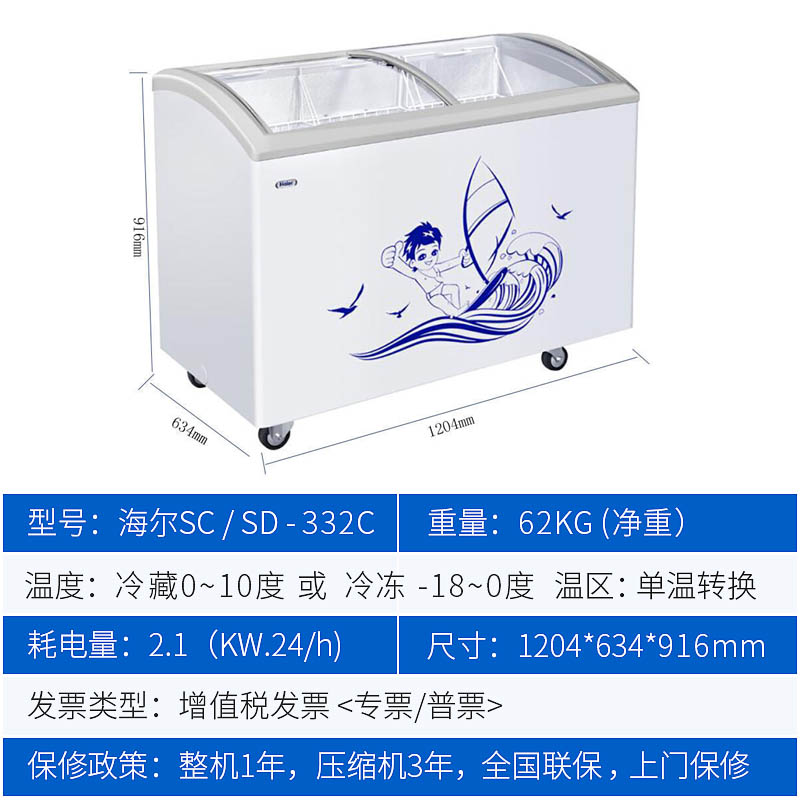 Haier ice cream cabinet 332 liters horizontal refrigerated freezer commercial freezer Supermarket convenience store glass door display cabinet