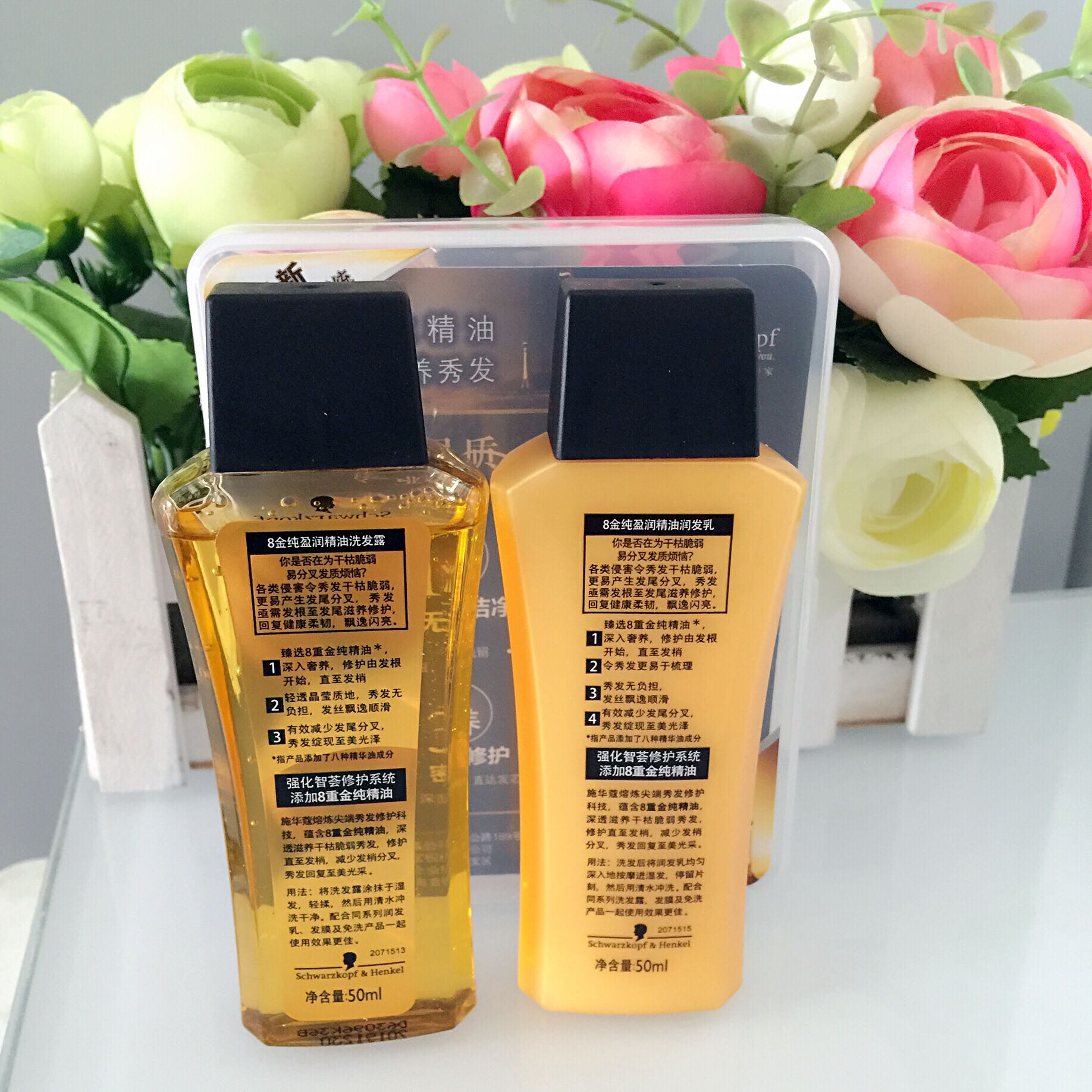 Set Schwarzkopf 8 Gold Pure Shampoo 50m Conditioner 50ml Set Essential Oil Repair Nourishing Care