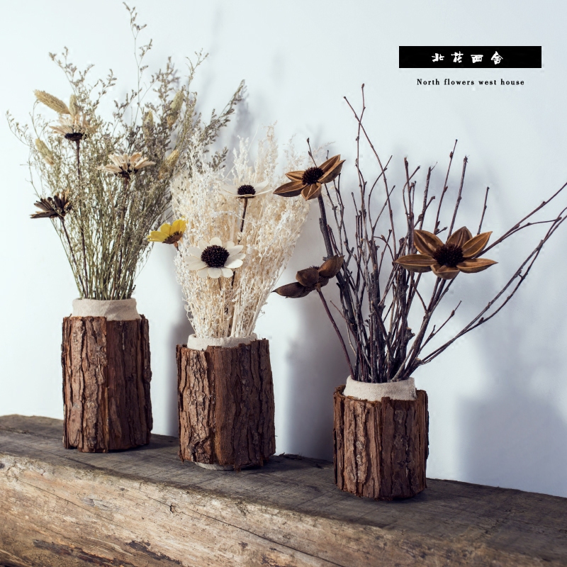 North Flower Xishe Original Handmade Bark Vase Flower Ware Dried Flower Bouquet Set Tea Room Ornament Big Modern Chinese Style