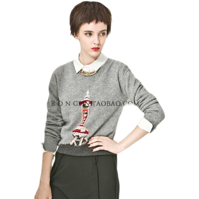Velvet Custom Landmark Series Oriental Pearl Women's Fall Shoulder Pullover Cashmere Sweater Big PAI Knitted Sweater