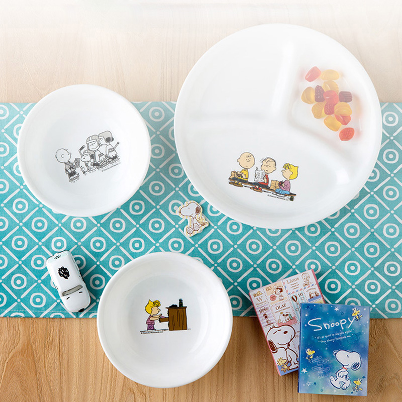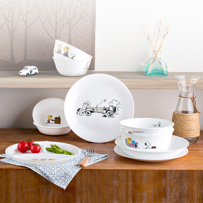 Corning tableware imported Snoopy glass tableware 10 pieces of household ceramic glass tableware rice bowl plate set