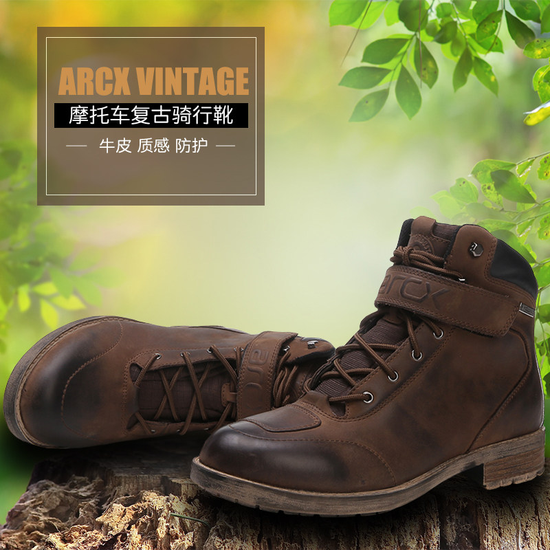 ARCX Yakut Bull-skin Antique Motorcycle Ride Waterproof Breakfast Airproof Shoes Locomotive Boots