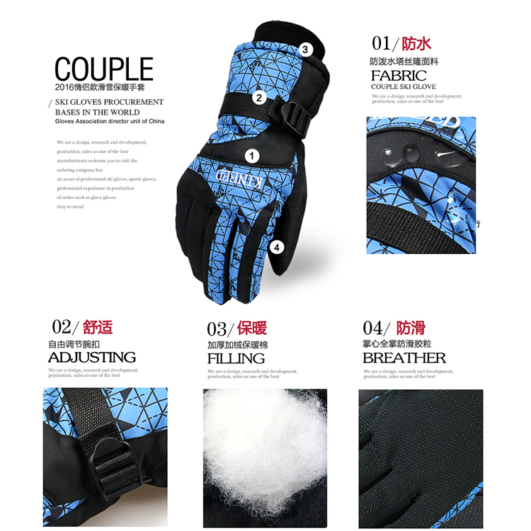 North latitude 35 gloves for men and women Winter warmth thickened windproof and waterproof anti-cold cotton Moden-climbing caravan ski gloves