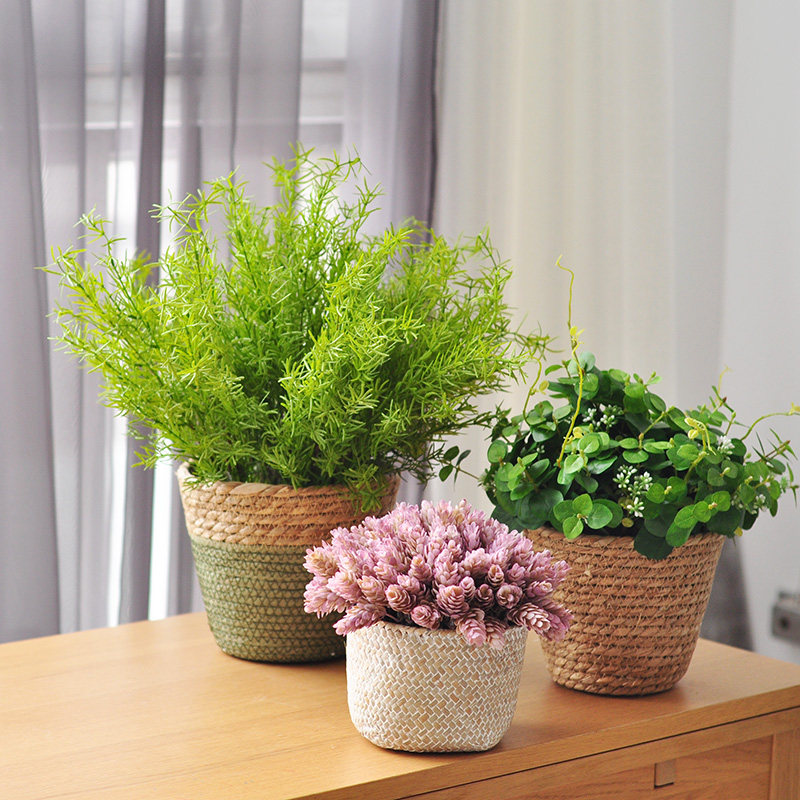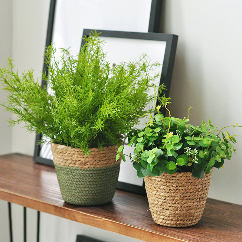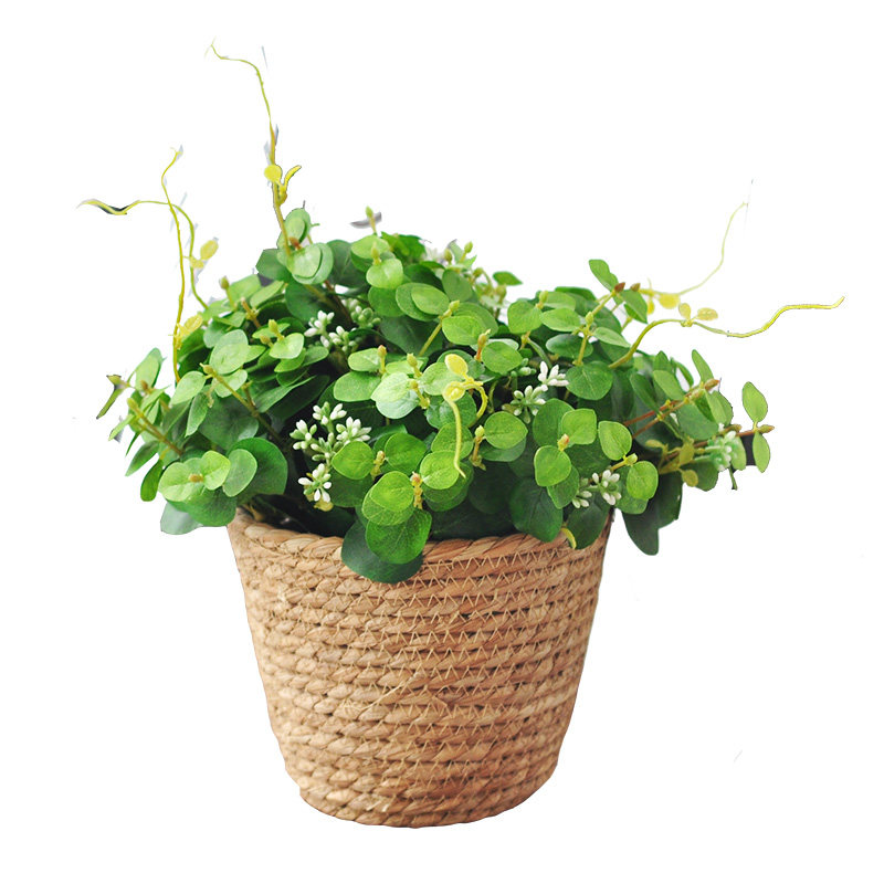 Nine Thoughts Nature Stylistic Handmade Hay Basket With Emulation Green Botanical Composition Potted Folk Juku Soft Decorative Pendulum art126
