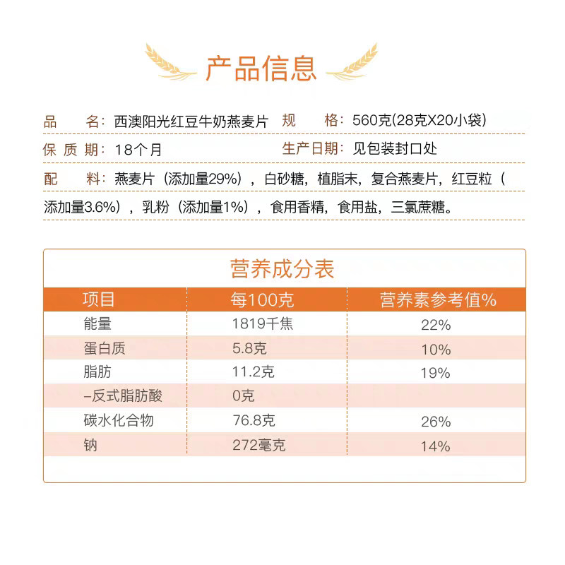 West Mai Western Australia sunshine red bean milk oatmeal 560g small bagged ready-to-drink Instant Punch Drink Nutritious Cereals Breakfast
