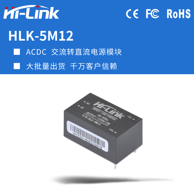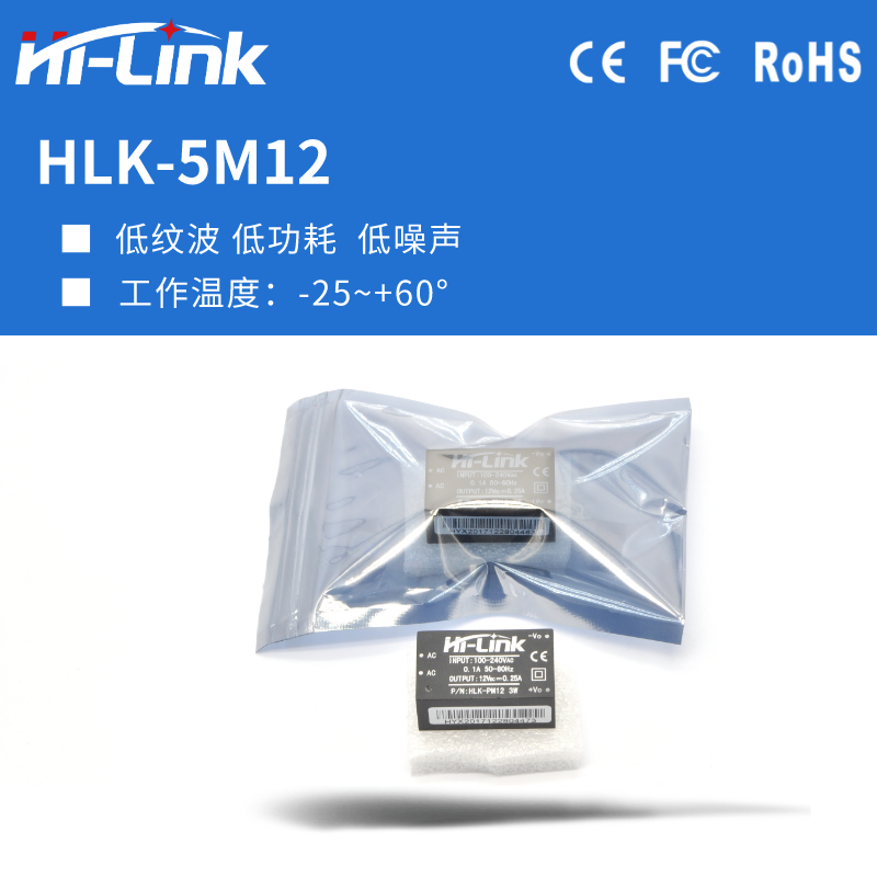 Hot selling switching power supply AC-DC low ripple 220V to 12V5W Smart home module HLK-5M12