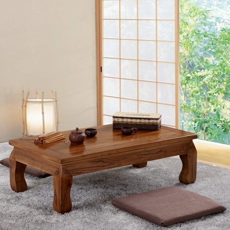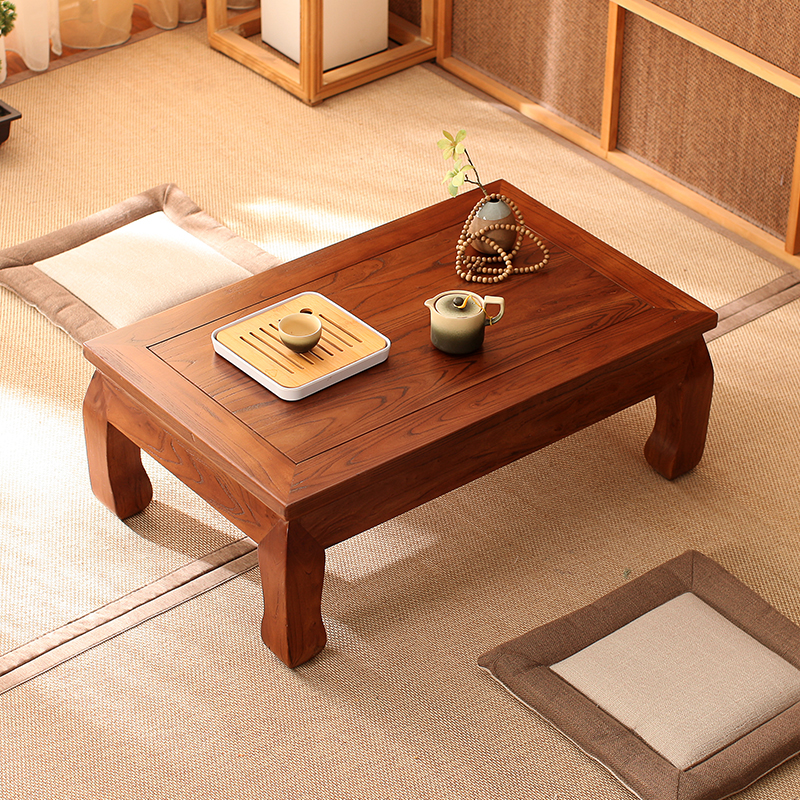 Solid wood coffee table Chinese elm kang table kang table low table tatami coffee table Japanese simple small low table Chinese learning table