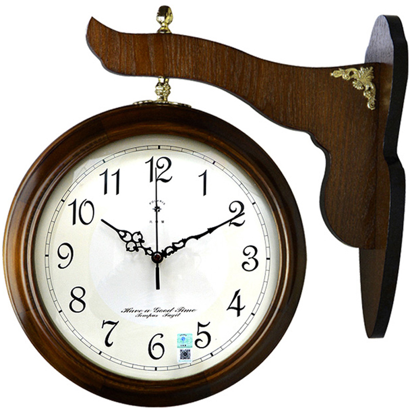 Polaris wall clock creative living room double-sided clock European modern simple silent quartz clock Solid wood large hanging watch clock