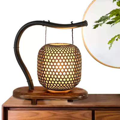 Creative bamboo woven table lamp Japanese zen solid wood living room bedroom bed head lamp Retro study New Chinese classical table lamp