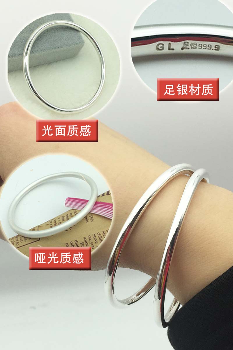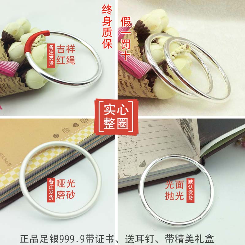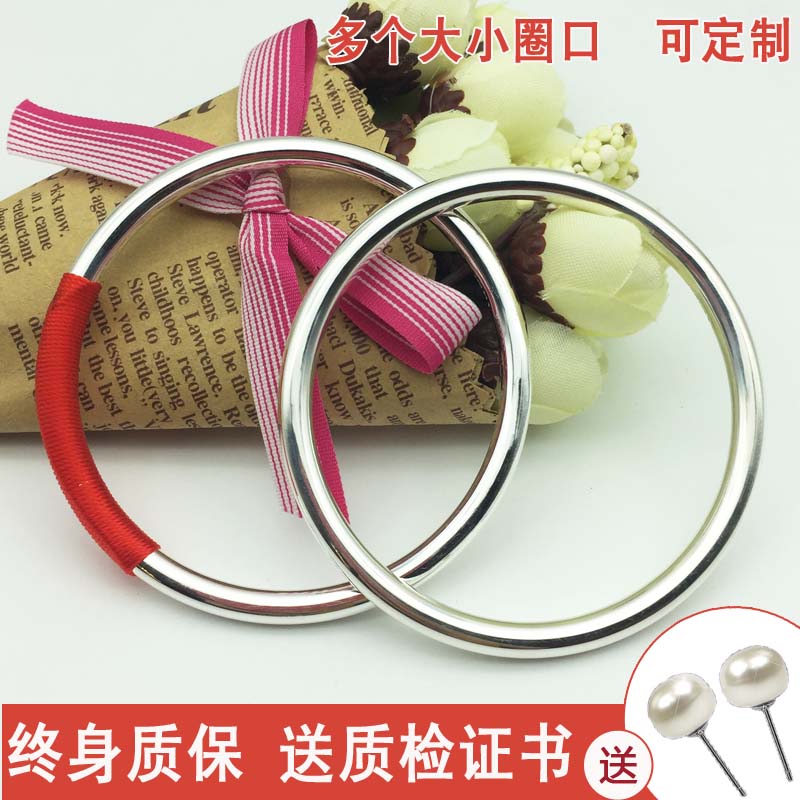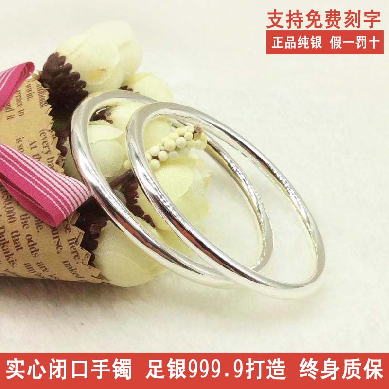 Pure silver 9999 bracelet solid aperture round bar sterling silver bracelet closed seal inheritance bright holiday gift lettering