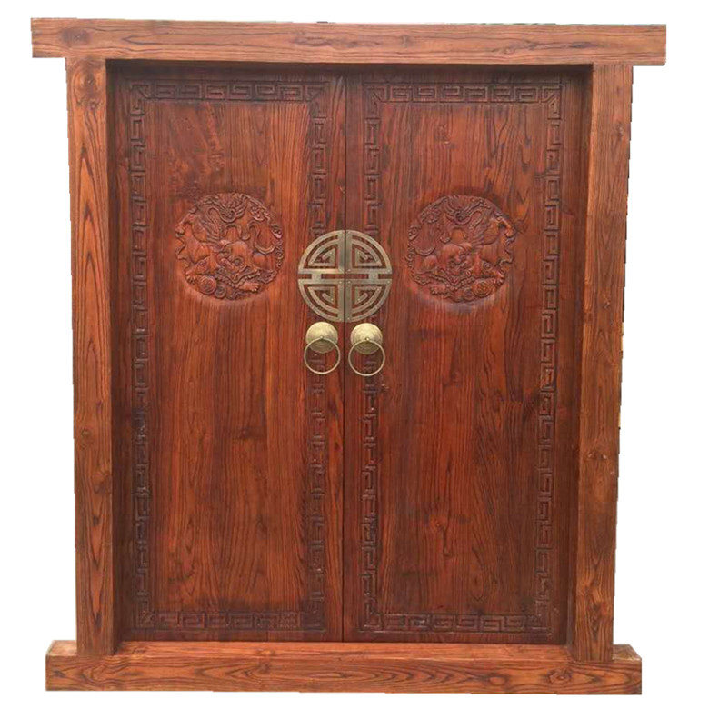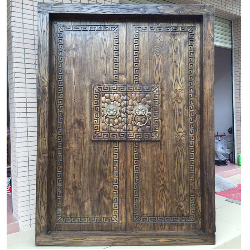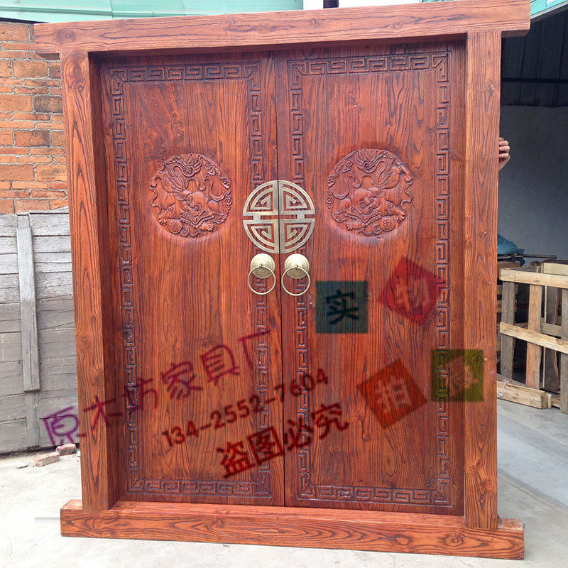 Solid wood gate Elm Chinese double switch gate courtyard villa antique gate rural entrance gate log door