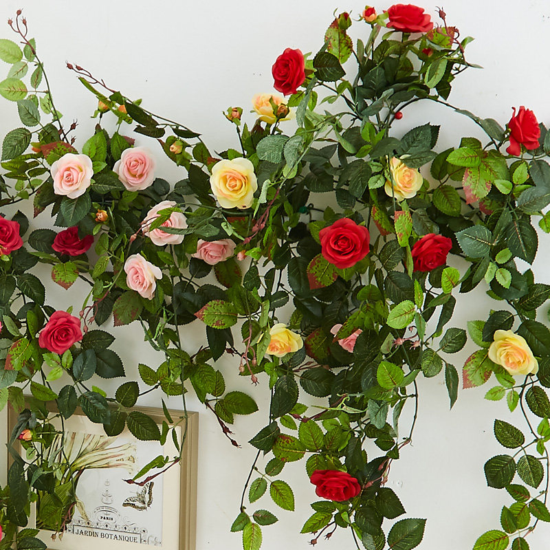 Simulation Rose Wall Wall-mounted Flowers Vines Multicolored Flower Vines Style Countryside Wall-mounted Air Conditioning Piping Decoration Flower Wall-mounted-Taobao