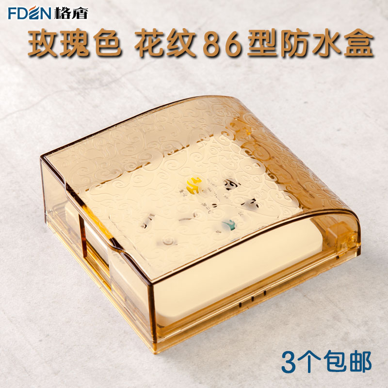 Type 86 transparent champagne gold splashproof box Bathroom Kitchen rose gold carved pattern switch socket power waterproof box
