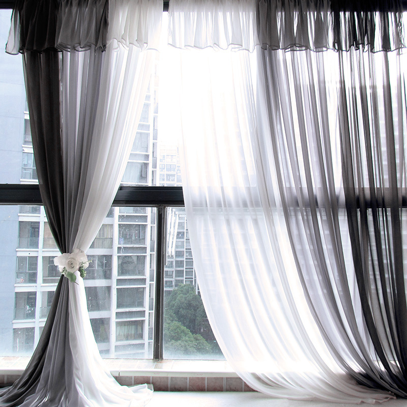 Black and white grey minimalist about modern yarn Curtain Living Room Finished Balcony Drapes Atmospheric Dresses Semi-Shading Fashion Nordic Yarn Blinds