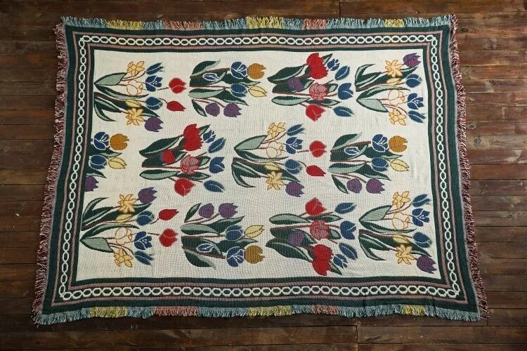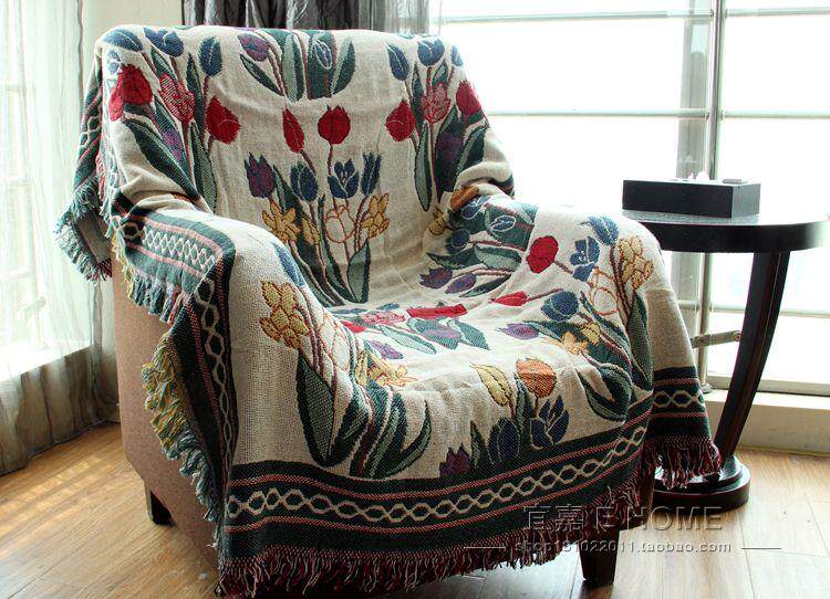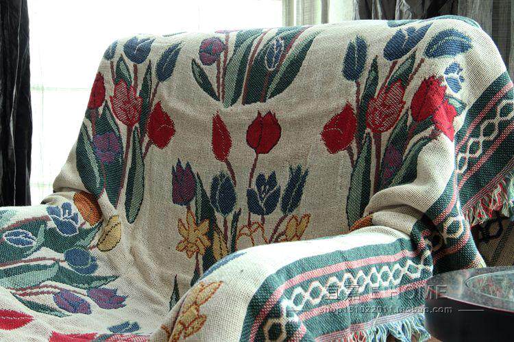 Foreign Trade Pure Cotton Thread Full Cover Single Double Trio Anti Slip Sofa Cushion Blanket Flower Pattern Wire Blanket Bed Cover Living Room Carpet