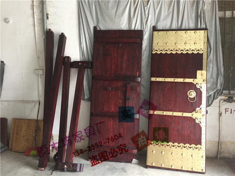 Solid wood imitation ancient Chinese style gate outdoor villa wood gate Village rural entrance door courtyard gate set to do