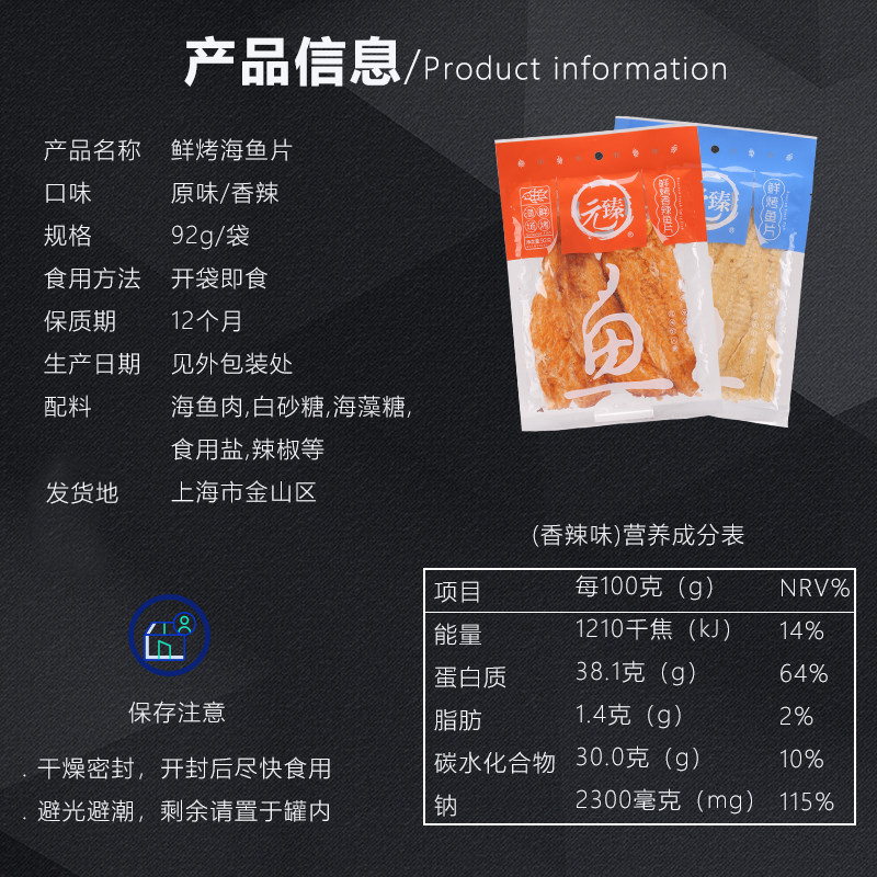 Meta-Zhen Fresh Roast Marine Fish Meat Slice Marine Fish Dry 92g Ready-to-eat Zero Food Sea Taste Grilled Fish Fillet Seafood Dry Goods Casual Snack