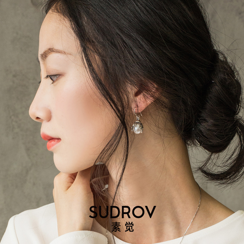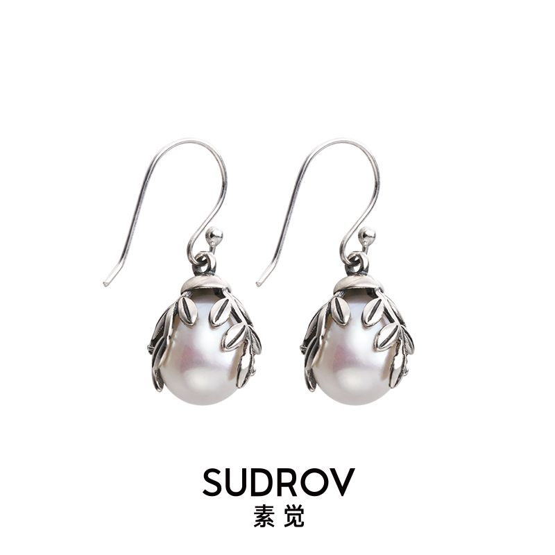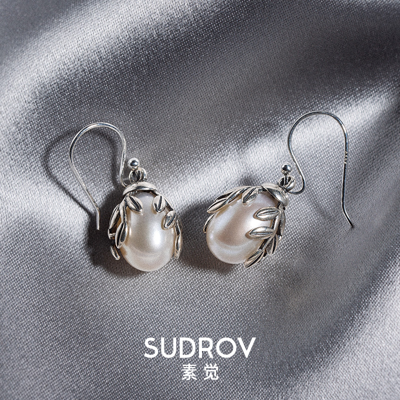 Sue S925 silver freshwater pearl earrings ear pin earrings female Korean personality temperament retro versatile earring gift