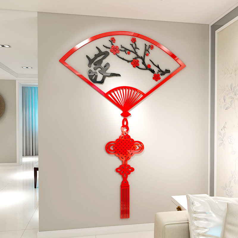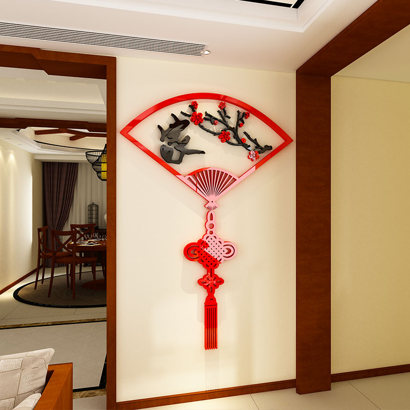 China wind 3D stereo wall fan shaped China Gamble Room bedroom masonry walkway sofa background decoration