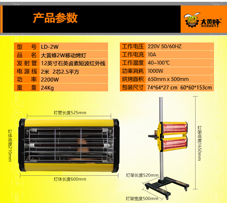 Bumblebee car paint room painting special mobile LD-2A paint lamp short wave infrared baking lamp equipment