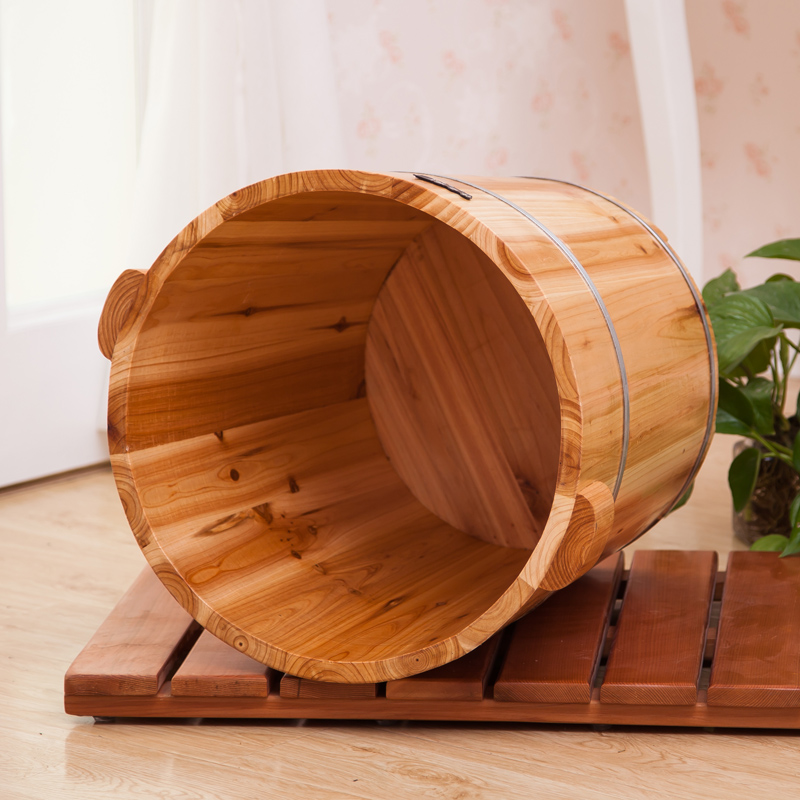 Mu Zhifeng 40CM Takasugi wood soaking foot wooden barrel foot bath barrel foot wash basin wooden barrel foot soaking wooden basin household with lid