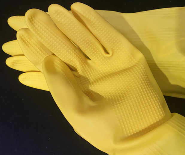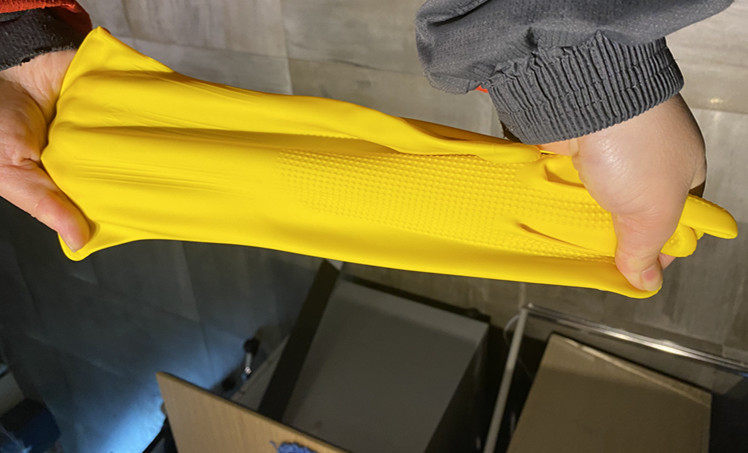 Yellow pure rubber gloves High elastic high quality imported rubber thread Non-slip waterproof wear-resistant kitchen dishwashing special