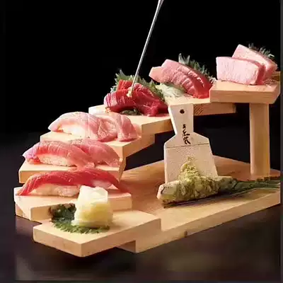 Creative hot pot tableware step by step, solid wood tableware rotating sushi plate rotating snack frame artistic conception dish tableware
