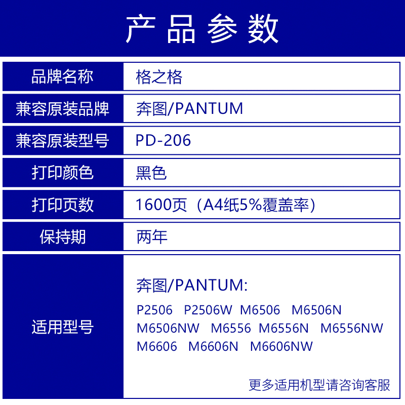 Grid PD-206 Toner Cartridge for Pento P2506 2506W M6506NW Printer Toner Cartridge M6556NW Ink cartridge M6606NW Easy