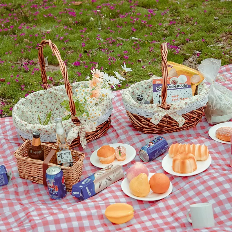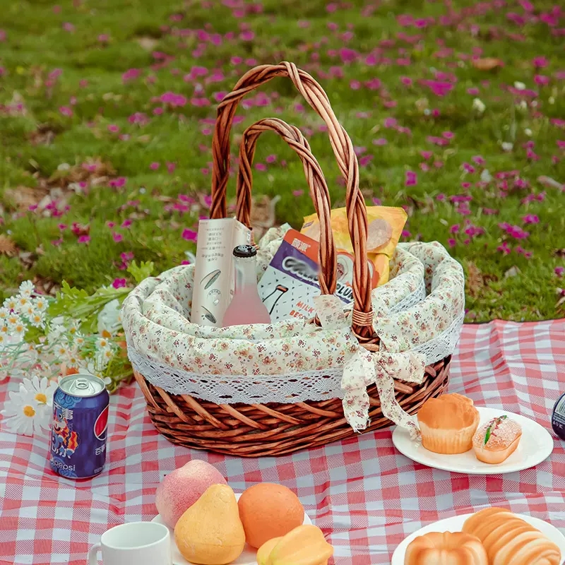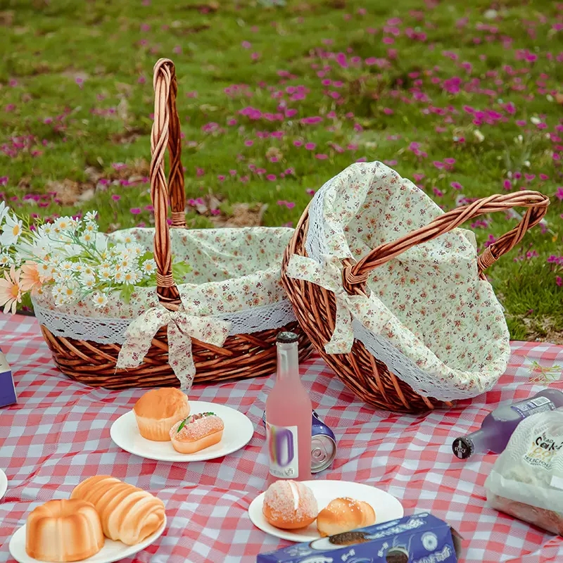 Jinliu Home Willow Storage Basket Picnic Basket Storage Basket Fruit Basket Portable Rattan Pastoral Willow Basket