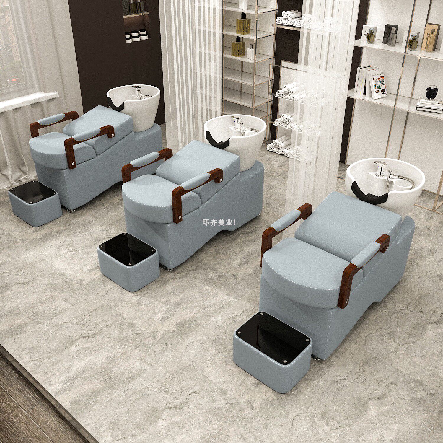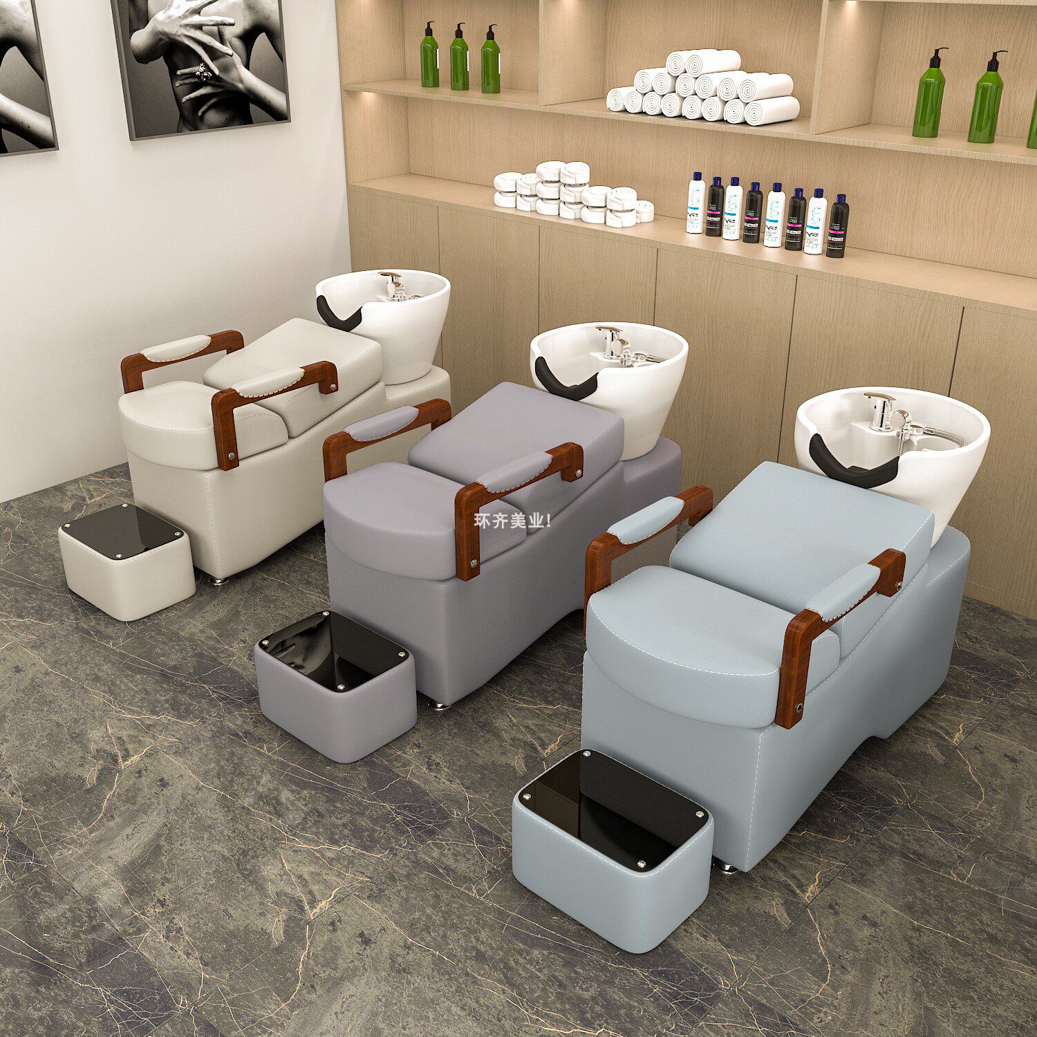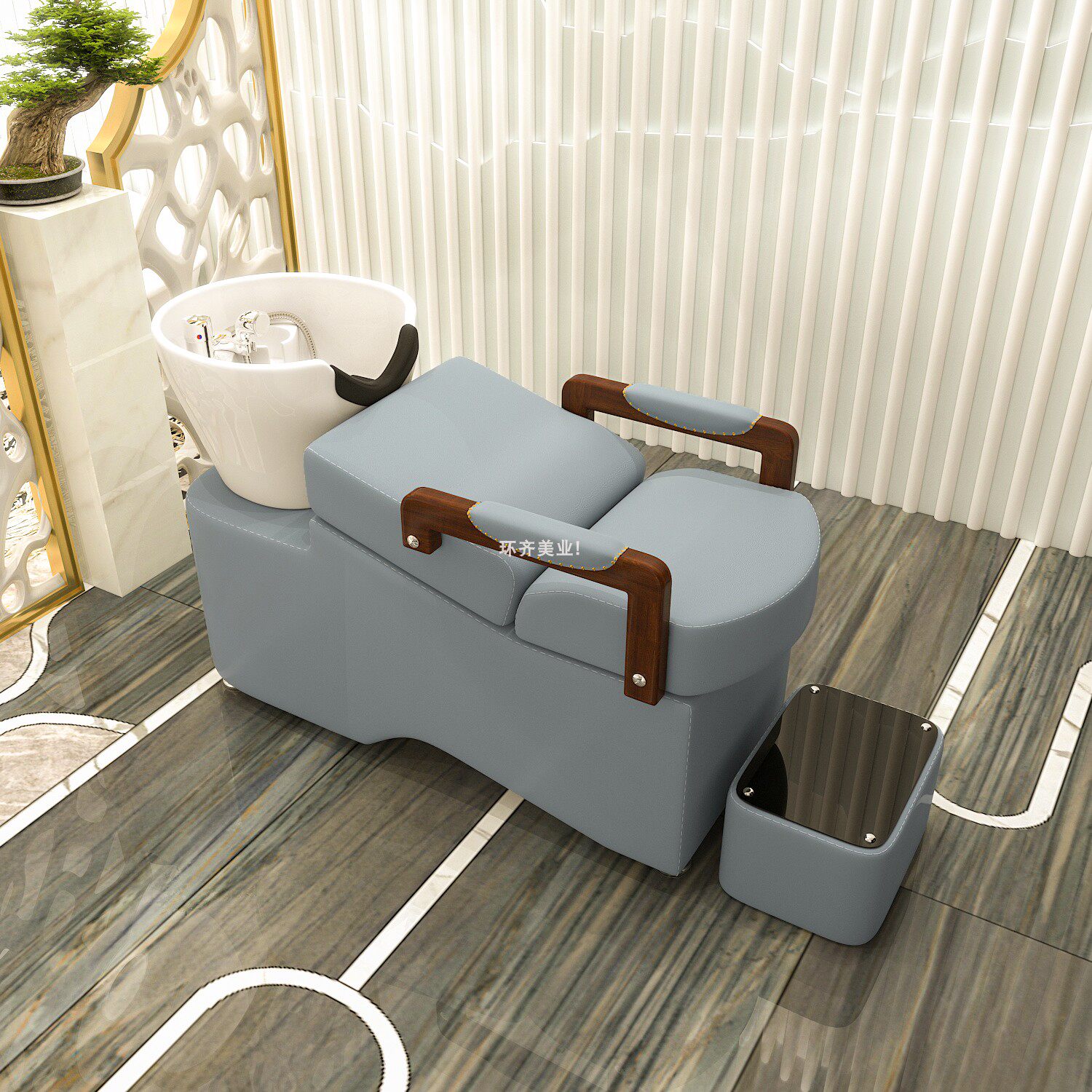 Net red European-style solid wood armrest shampoo bed ceramic basin Li Kun shop hair salon special retro hairdressing shampoo bed D44