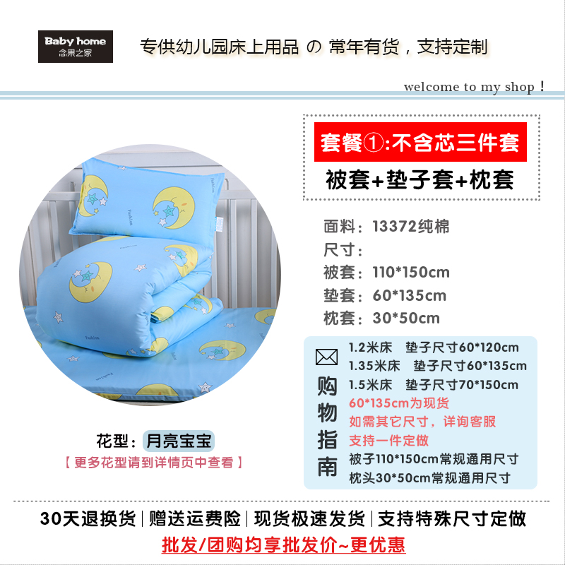 Children Cartoon Pure Cotton Three Sets Blue Moon Baby Pattern Kindergarten Afternoon Nap Full Cotton Quilts-Taobao