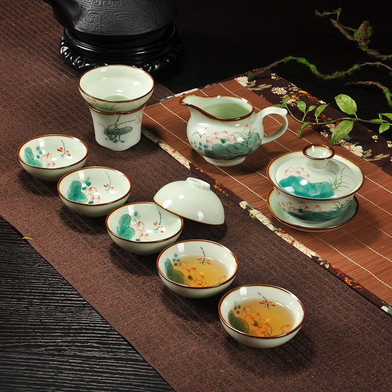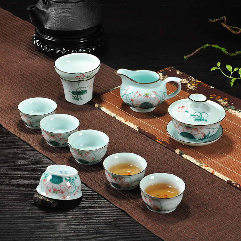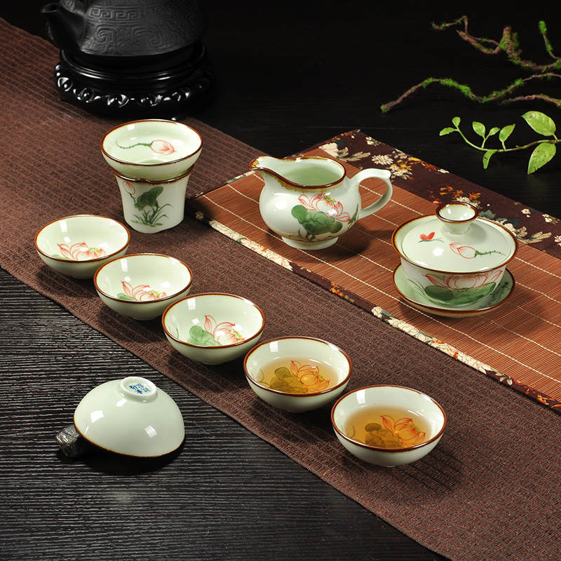 01 hand painted lotus tea set (partial yellow) 02 hand-painted lotus tea set (partial yellow) 03 hand painted lotus tea set (partial yellow) 04 hand-painted blue color landscape tea set (partial yellow) 05 hand-painted landscape