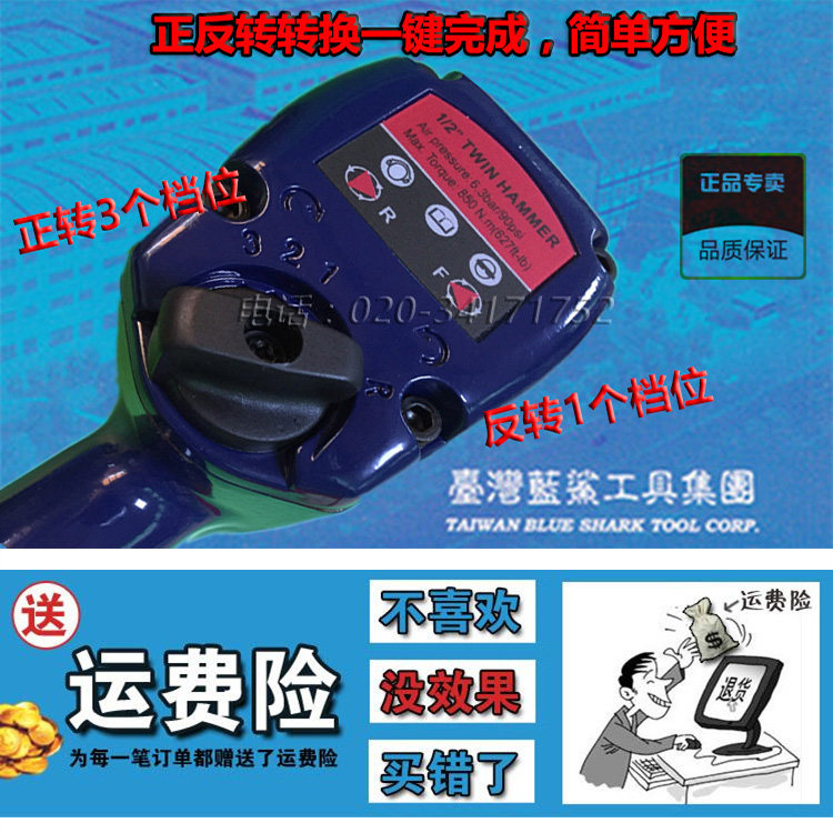 Direct sales Taiwan blue shark small pneumatic wrench pneumatic tool powerful BS-860 wrench 125 kg 1 2 industrial grade