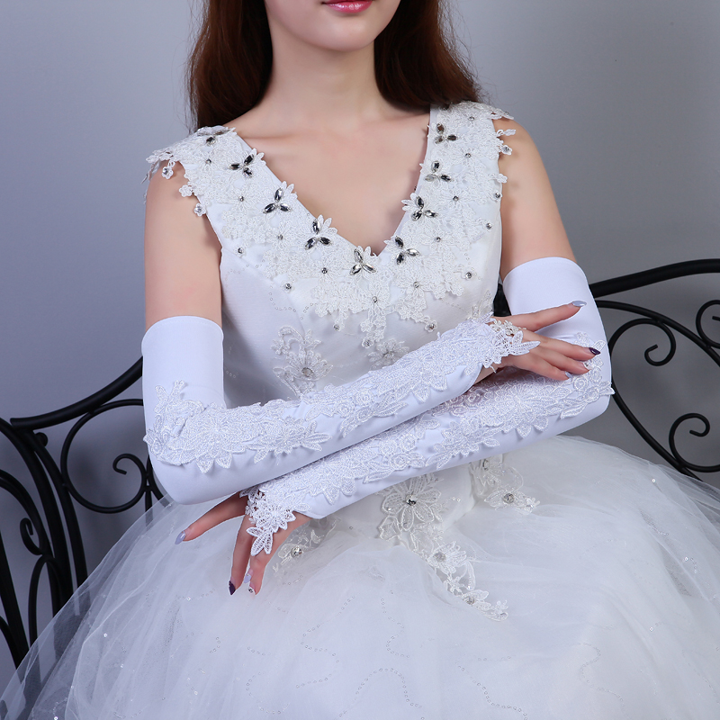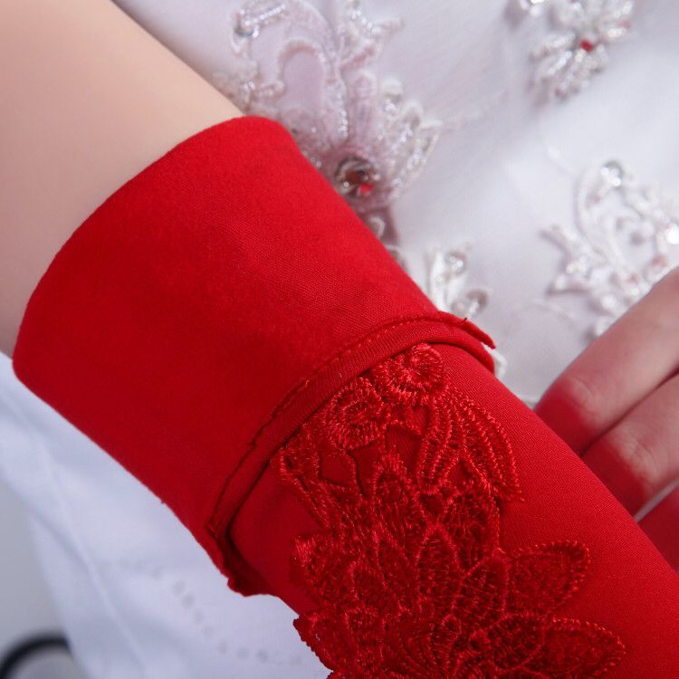New Bride Wedding Ticking Lace Red White Wedding Gloves Autumn Winter Long Version Plus Suede Thickened With Elbows Gloves