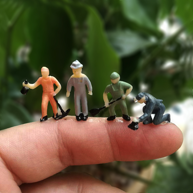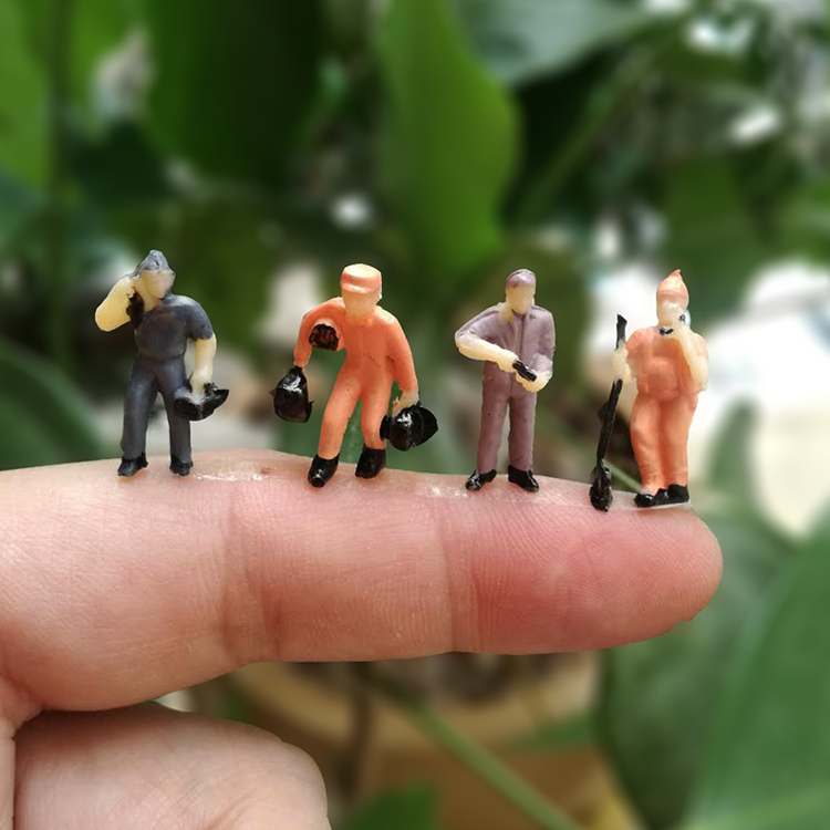 Micro shot macro photography props 1:87 color life travel villain 2cm high miner railway worker model