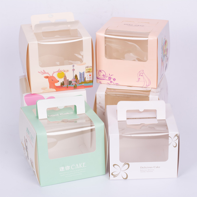 4 Inch Square Open Window Hand Birthday Cake Box Small Four Inch Mousse Baking West Point Packaging Box Mini Packing Box