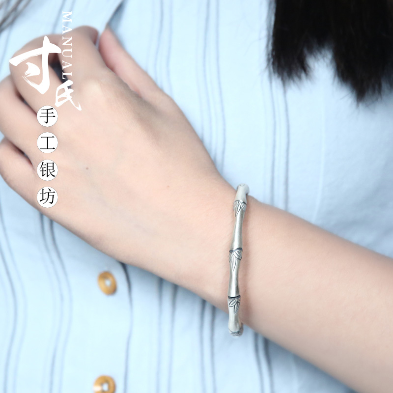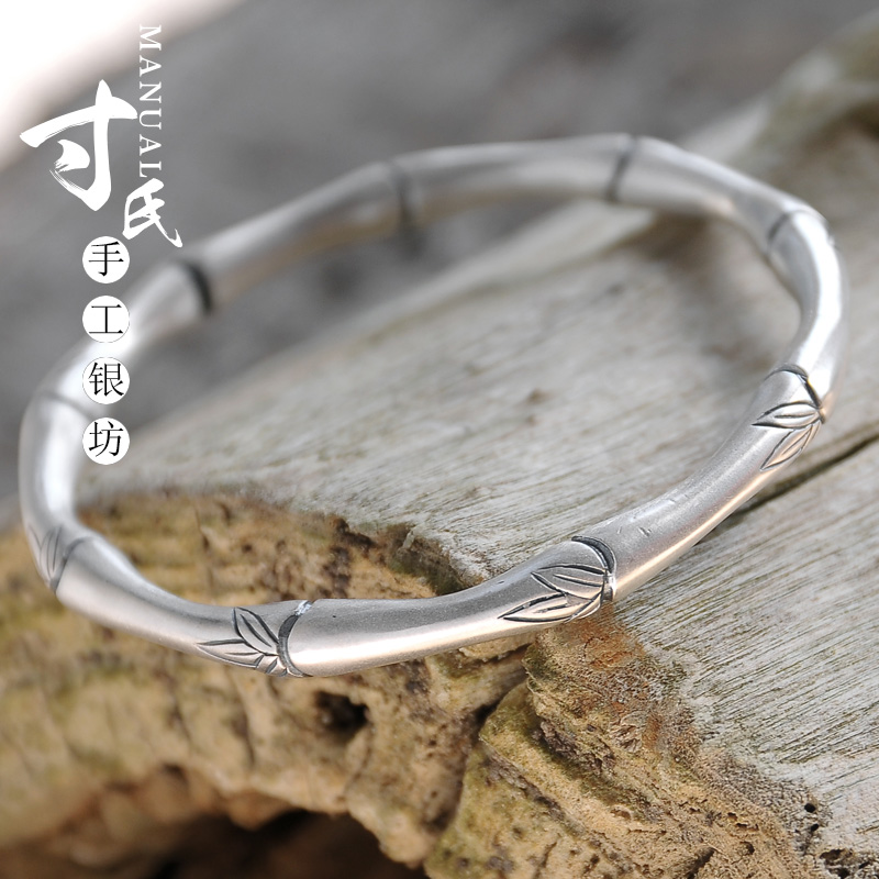Inch silver Yunnan handmade S999 foot silver snowflake silver bamboo silver bracelet Korean version personality classical sterling silver bracelet