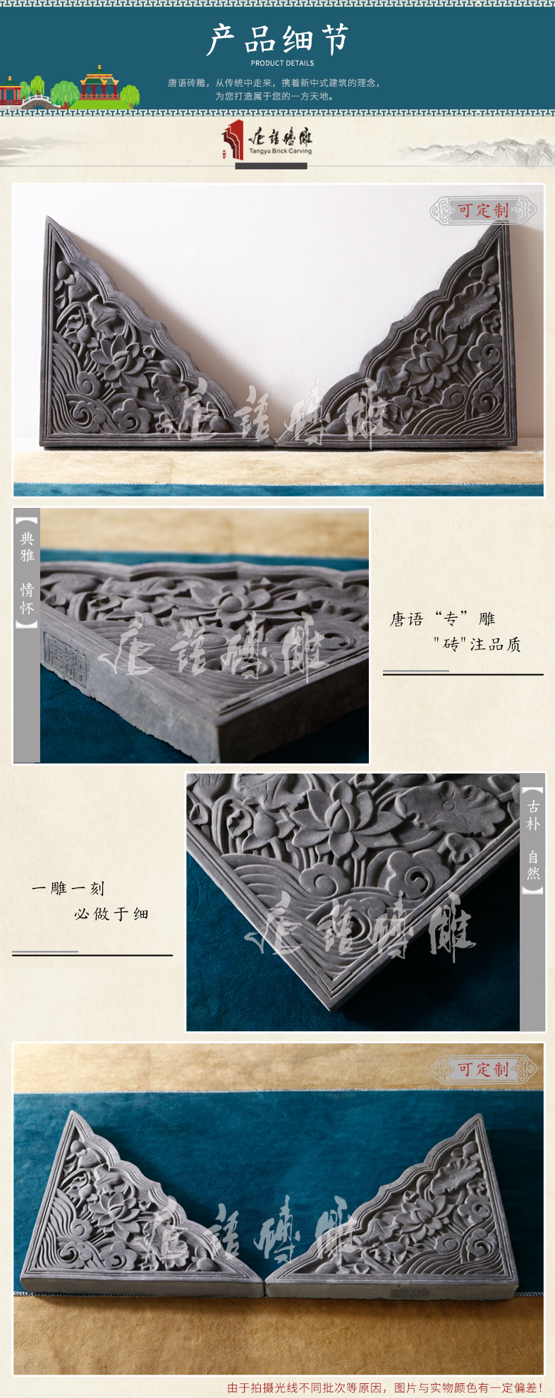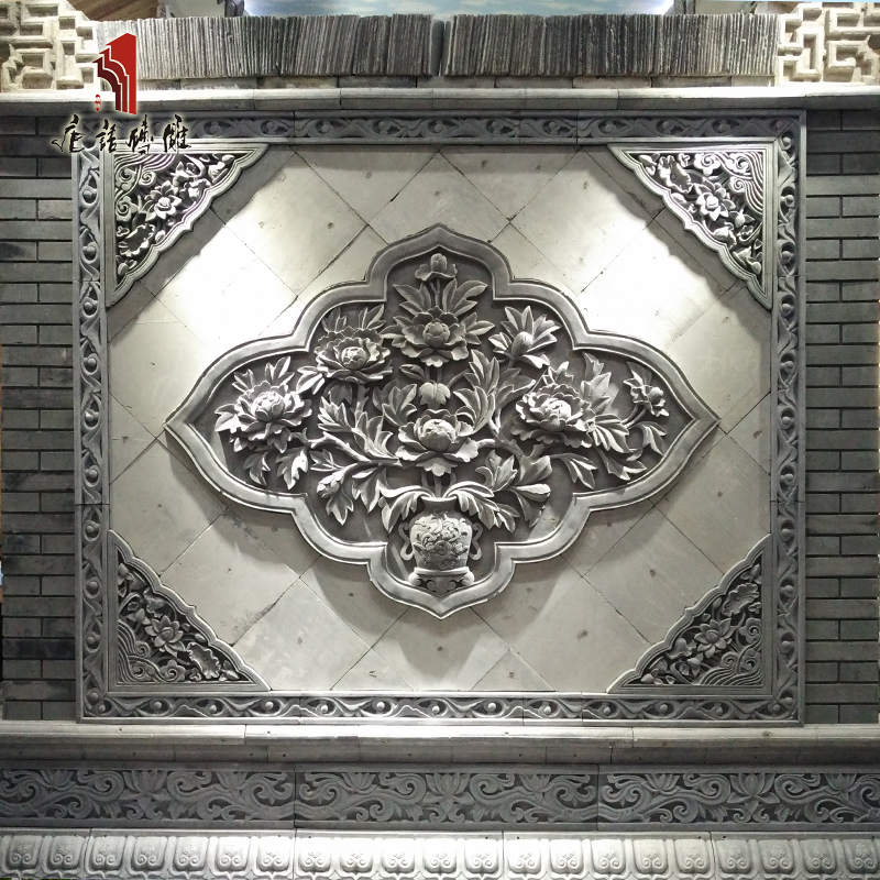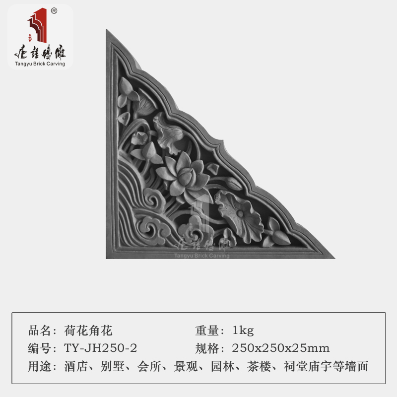 Tang language lotus flower corner flower four corners decorative brick carved antique photo wall shadow wall right angle background wall decorative green brick building materials