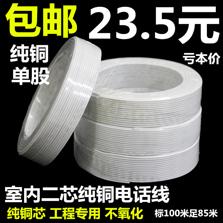 Zhanjia all copper two-core engineering telephone line 2-core single-strand RJ11 pure copper telephone line A roll of 100 meters