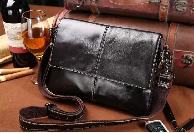 Hong Kong Single Shoulder Bag Street Tide Men's Bag Genuine Leather Leisure Skew Satchel Crosswalk Soft Bull Leather Backpack Tide Cards-Taobao