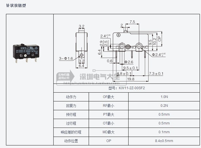 Small micro-switch SS-J5 stroke switch micro limit KW12 button 3 feet quality silver point UL certification
